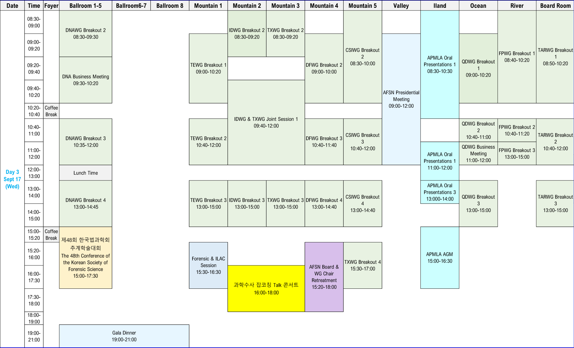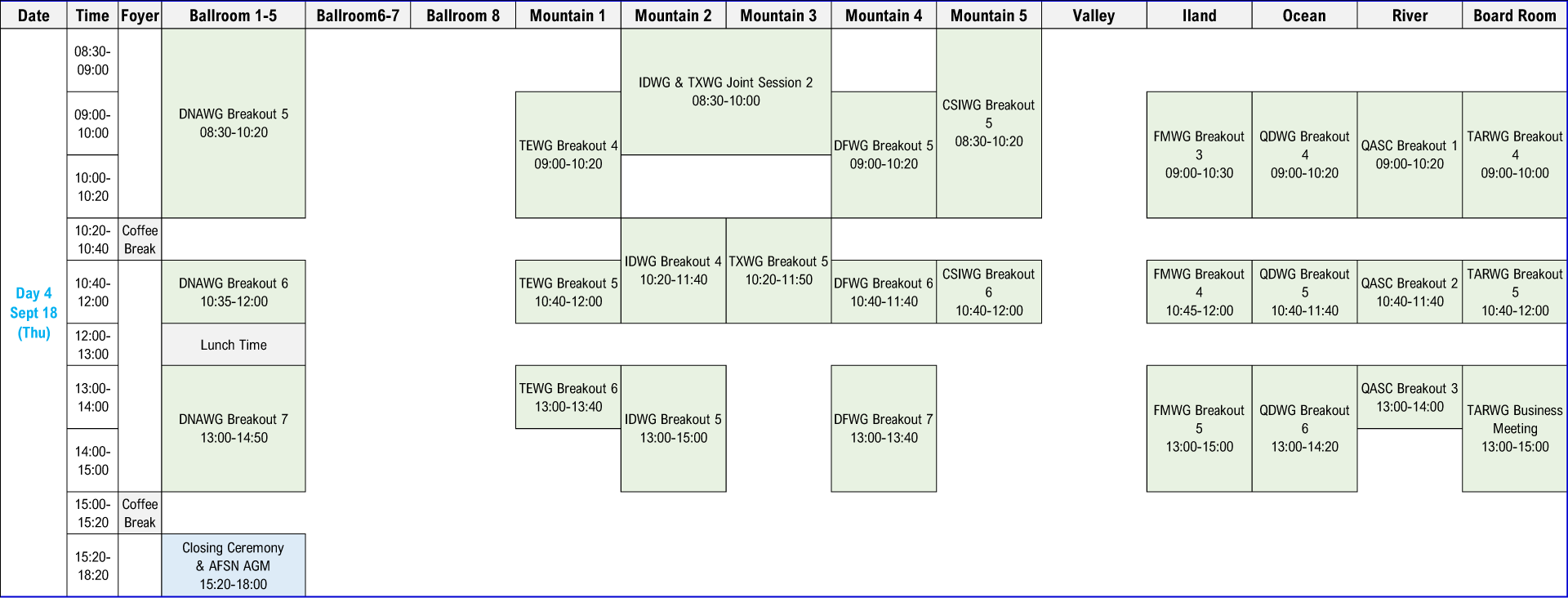 | WG Breakout | Oral Presentations | WG Breakout | |||||||||||||