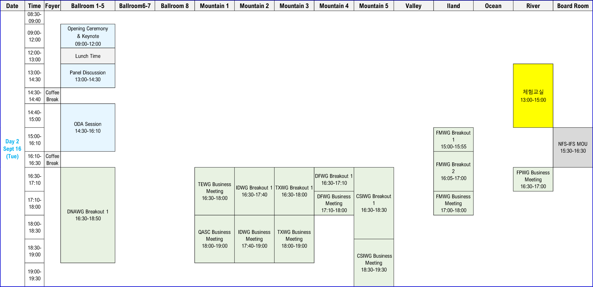 | WG Breakout | Oral Presentations | WG Breakout | |||||||||||||